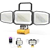 LED Work Light Compatible with DeWalt 20V Battery, 150W 15000LM Flood Light, 6500K Daylight 3-Head Adjustable, USB Type-C&2 Brightness Modes Portable Flashlight Job Site Light (Battery Not Included)