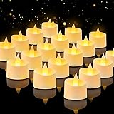 Haown 24-Pack Realistic Flameless Tea Lights, Patented Dual-LED Tech (Steady + Flicker) - Battery Operated Warm Yellow Votives for Wedding, Valentine, Home Decor (Ivory Base, 24 Pack)