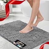 GORILLA GRIP Bath Rug Mat, Thick Soft Absorbent Chenille, Quick Dry Microfiber Mats, Rubber Backing Washable Shower Floor Rugs, Bathmat Runner, US Designed Bathroom Home Decor Accessories 24x17, Grey