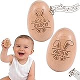 Eggs Musical Shakers, Personalized Easter Wooden Egg 2026 Engraved with Free Text for Boy Girl, Eester Egg Stuffers Custom Gifts for Baby Shower, Hand Instrument for Education Party