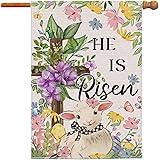 Easter Flag 28x40 Inch Double Sided Outside, He Is Risen Easter Flag Burlap Lamb Flowers Cross Decorations Outdoor Yard