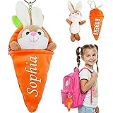 Personalized Easter Bunny Plush Keychain, Reversible Carrot Stuffed Bunny Keychain, Plush Custom Name Keyring, Easter Basket Stuffers for Kids, Cute Bunny Gifts for Girls Boys