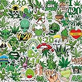 Vemfare Weed Plant Stickers for Adults - 100 Pcs Green Leaves Trippy Water Bottle Stickers, 420 Waterproof Vinyl Scrapbook Decals for Laptop Journaling