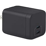 Amazon Basics Fast Charging USB C Nano GaN Wall Charger, 65W 2-Port for Laptops, Tablets, Phones, Black