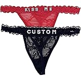 2-Pack Personalized Thongs with Names, Custom Lace Underwear Panties with Rhinestone Shiny Letter Name for Women & Girlfriend Birthday Gift/Valentine's Day Gift Black