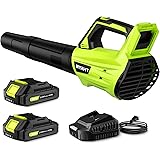 Leaf Blower Cordless, Leaf Blower with Battery and Charger - 2 Speed Modes, 2 Batteries, 20V Powerful Lightweight Electric Blowers for Blowing Leaves, Lawn Care, Patio Cleaning and Dust, Green