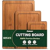 Zeawec 3-Piece Set Bamboo Cutting Board for Kitchen - Crack-Resistant Wood Chopping Boards with Deep Juice Grooves, Pre-Oiled Butcher Block for Meat, Vegetables & Cheese, Carbonized
