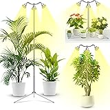 Full Spectrum Grow Lights for Indoor Plants 15-62 Inches Height Adjustable Aluminum Alloy Plant Growing Lamps with Detachable Tripod Stand, Auto On/Off Timer (Full Spectrum, Three Heads)