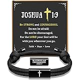 PEALICIOUS Joshua 1 9 Cross Bracelet for Men, Religious Boys Bracelets Inspirational Christian Gifts Prayer Bracelet for Faith as Teen Boy Gifts, Catholic Confirmation Birthday Gifts for Son Nephew