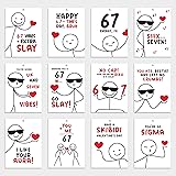 24 Pcs Valentines Gift Tags with Stickers & String, Funny Slang 67 Cards, Valentines Day To and From Tags or Wrapping Present, Classroom Valentine Exchange Cards, Valentines Day Gifts for Kids Teens