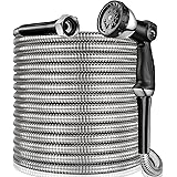 110 ft Garden Hsoe - 2025 New 304 Stainless Steel Garden Hose with 10-Function Spray Gun, 3/4'' Copper-Chrome Fittings – Lightweight, Durable, and Kink-Free, Metal Water Hoses for Gardening