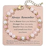 Quietsun Valentines Day Gifts for Her Kids Teens Girl Gifts Teenage Women Daughter Birthday Ideas 10 12 13 Year Old Rose Quartz Bracelet Healing Protection Easter Basket Stuffers Christmas Stocking
