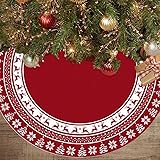 Lizuart Christmas Tree Skirt 48 Inches | Red Xmas Tree Skirt with Rustic Snowflake & Reindeer Pattern, Fits 5 to 7 Foot Trees, Perfect Christmas Decorations for Holiday Trees.