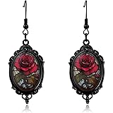 DAYANEY Gothic Red Rose Earrings for Woman, Halloween Earrings Vintage Cameo Goth Rose Jewelry as Gothic Accessories, Devil Drop Glass Flower Earring Grunge Jewelry as Halloween Outfits for Woman