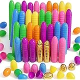 Qudoustar 100 Pack 3 Inch Large Fillable Plastic Easter Eggs Bulk Includes 6 Surprise Golden Eggs, Bright Colors Empty Eggs for Easter Hunt Basket Stuffers Party Favors