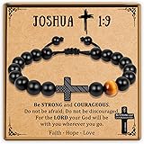 Trinckle Easter Basket Stuffers for Boys First Communion Gifts, Joshua 1 9 Cross Bracelet Men, First Holy Communion Gifts for Teen Boy, Jesus Easter Christian Catholic Confirmation Gift for Son Nephew