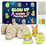 Glow in The Dark Wooden Magnets for Kids, Paint Your Own Arts and Crafts Painting Kit, Easter Crafts for Kids, Easter Basket Stuffers, Glow in The Dark Party Favors, Birthday Gifts for Boys Girls