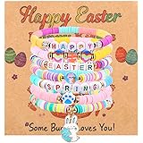 7 Pcs Easter Bunny Beaded Bracelet Set - Stackable Polymer Clay Heishi Stretch Bracelets with Bunny Carrot Egg Charms, easter bracelet bunny bracelet for gir, Easter Spring Jewelry Gifts for Teen